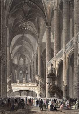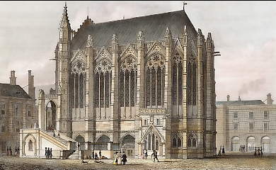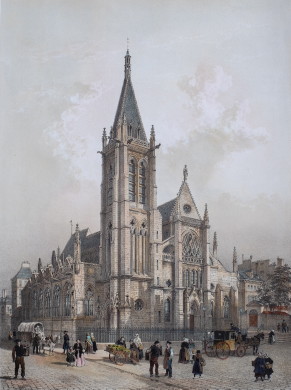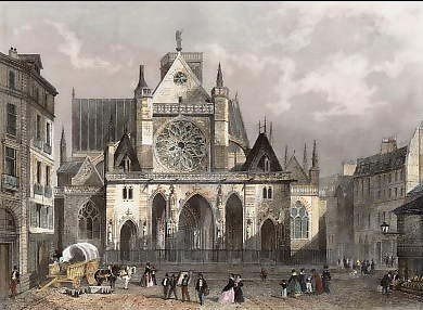 Paris. Steel engraving "from original drawings taken under the direction of A. Pugin, the engraving executed under the superintendence of C. Heath". 1829. Good condition. No title under the plate. Hand-coloured. 14x9cm. Matted.