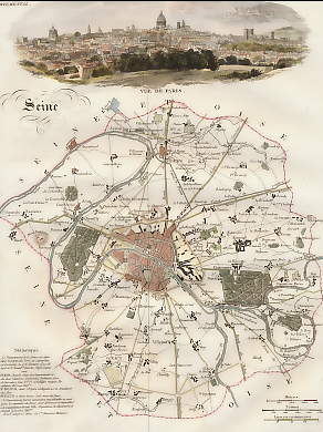 Paris. Original steel engraving. 1853. Good condition. Decorative border. Hand-coloured. 11x7,5cm. Matted.