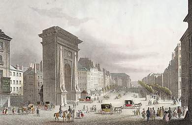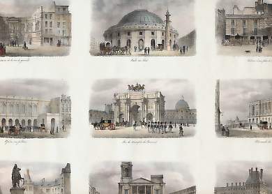 1. Fontaine de la rue de Grenelle, 2. Opéra, rue Pelletier, 3. Place des Victoires, 4. Halle au bled, 5. Arc de Triomphe du Carrousel, 6. St. Eustache, 7. Château d´eau, place du Palais Royal, 8. Colonnade du Louvre, 9. Entrée des Thuileries, côté du Pont Royal.