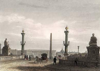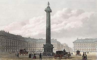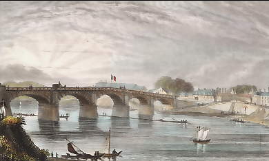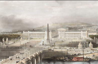 Paris. Steel engraving "from original drawings taken under the direction of A. Pugin, the engraving executed under the superintendence of C. Heath". Engraved by W. Tombleson. 1829. Very good condition. No title under the plate. Hand-coloured. 14x8,5cm. Matted.