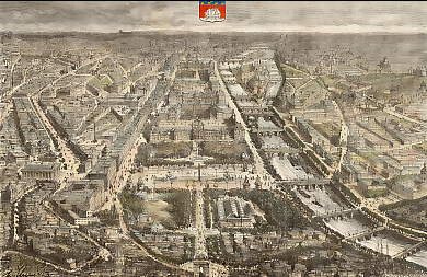 Paris. Original wood engraving, engraved by Navellier and Marie after Clerget. 1881. Very good condition. Hand-coloured. 22,5x15cm. Matted.