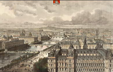 Paris. Original steel engraving, drawn by Roux, engraved by Le Petit. 1853. Good condition. Hand-coloured. 13x10cm. Matted.