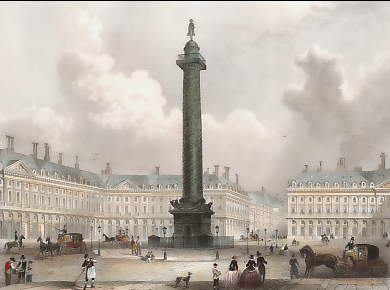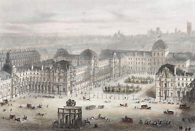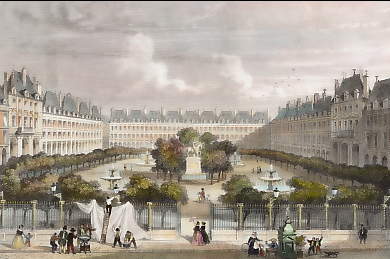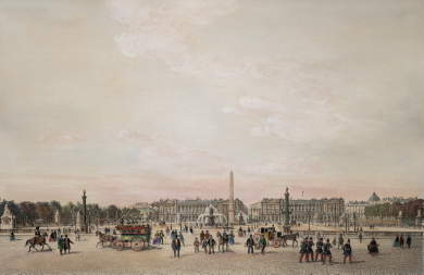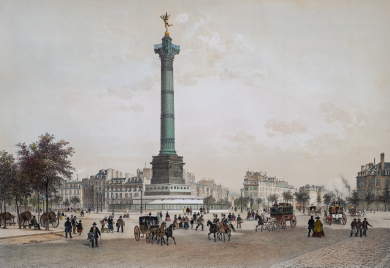 Paris. Original lithograph, lithographed by Bachelier after P. Benoist, figures by A. Bayot. 1861. Very good condition. Hand-coloured. 36x24,5cm.