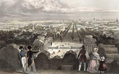 Paris. Original steel engraving drawn by Cpt Batty, engraved by E. I. Roberts. 1821. Very good condition. Hand-coloured. 20x12,5cm. Matted.
