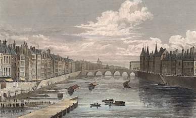 Paris. Steel engraving "from original drawings taken under the direction of A. Pugin, the engraving executed under the superintendence of C. Heath". 1831. Good condition. No title under the plate. Hand-coloured. 14x8cm. Matted.