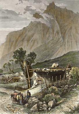 Daghestan. Original wood engraving drawn by Th. Weber, engraved by A. Khol. 1878. Good condition. Modern hand-colouring. 18,5x12,5cm. Matted.