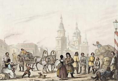 Russia. Original wood engraving drawn by E. Breton. 1846. Very good condition. Hand-coloured. 15,5x10cm. Matted.