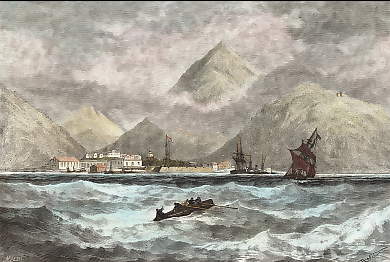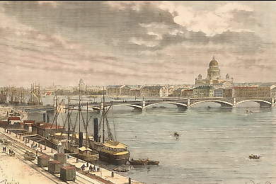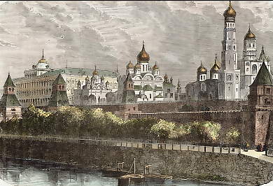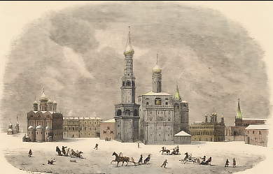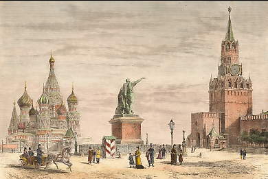 Russia. Original wood engraving, engraved by C. Laplante after T. Taylor. 1879. Water stain in the left margin. Hand-coloured. 19x13cm. Matted.