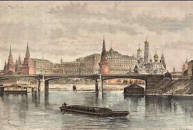 Russia. Original wood engraving, engraved by C. Barbant after T. Taylor. 1881. Very good condition. Hand-coloured. 19x13cm. Matted.