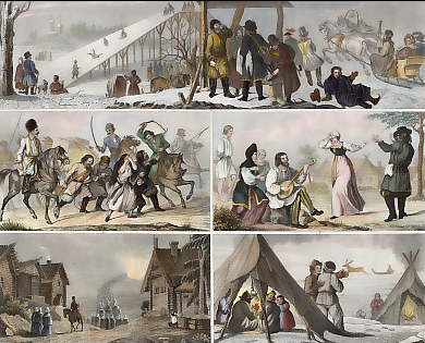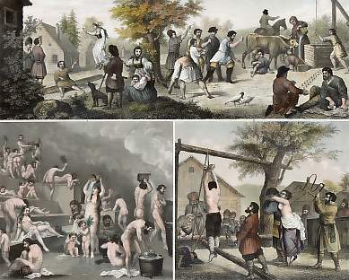 1. Rural Sport, 2. Pastoral Activities and Games, 3. Bath House, 4. Knout.