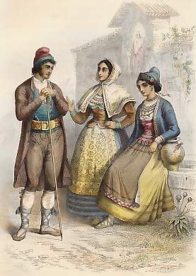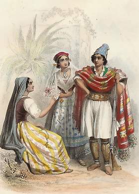 Spain. Original steel engraving, engraved by Geoffroy after Jeanron. 1844. Very good condition. Hand-coloured. 15x10,5cm. Matted.