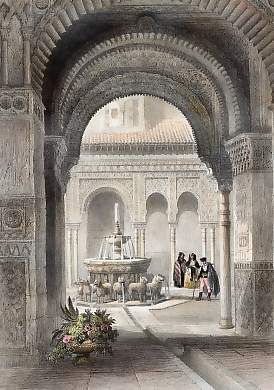 Spain. Original steel engraving, engraved by F. C. Lewis after W. Perring. 1864. Good condition. Hand-coloured. 24,5x18,5cm. Matted.