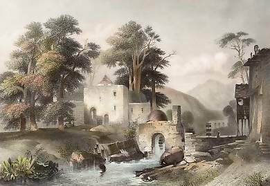 Turkey. Original steel engraving drawn by C. Texier, engraved by Lemaître. 1862. Very good condition. Hand-coloured. 15x9,5cm. Matted.