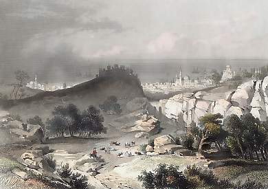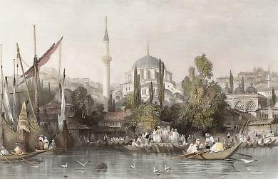 Turkey. Original steel engraving, engraved by Joseph Clayton Bentley after William Henry Bartlett. 1838. Good condition. Hand-coloured. 18x12cm. Matted.