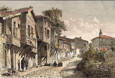 Turkey. Original wood engraving, engraved by C. Barbant after T. Taylor. 1884. Good condition. Hand-coloured. 18,5x12,5cm. Matted.