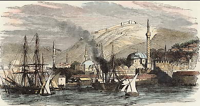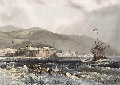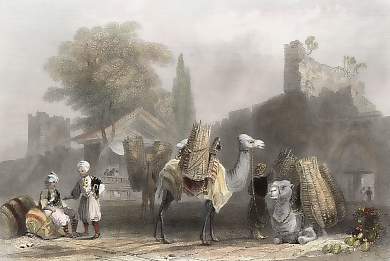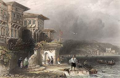 Turkey. Original steel engraving drawn by W. H. Bartlett, engraved by H. Griffiths. 1839. Very good condition. Hand-coloured. 18x12cm. Matted.