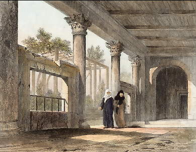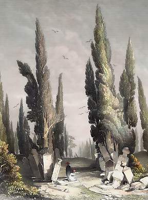 Turkey. Original steel engraving drawn by T. Allom, engraved by W. H. Capone. 1838. Light foxing in the left margin. Hand-coloured. 19x12,5cm. Matted.