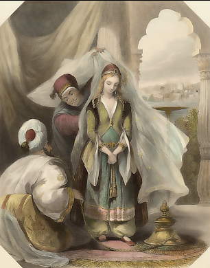 Turkey. Original steel engraving drawn by A. Geyer, engraved by W. French. ca 1850. Very good condition. Hand-coloured. 17,5x12cm. Matted.