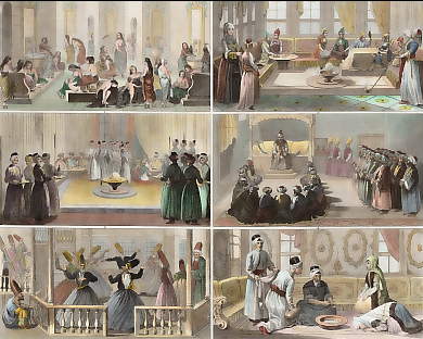 1. Turkish Baths for Women, 2. Harem, 3. Iftar or Supper by the Grand Vizier in the 30th Night of the Ramadan, 4. Religious Ceremony in the Arz Odaci, the Day before Bayram, 5. Dance of Mevlevi Dervishes, 6. Turkish Noble´s Grooming.