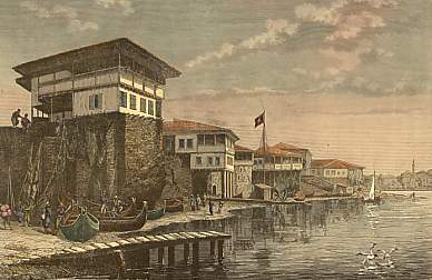 Turkey. Original wood engraving, engraved by E. Whymper. ca 1880. Very good condition. Printed on the reverse side. Hand-coloured. 18,5x12,5cm. Matted.