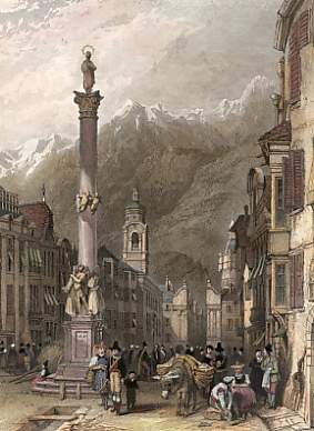 Austria. Original steel engraving drawn by J. Alt, engraved by H. Winkles. 1841. Very good condition. Hand-coloured. 16x10cm. Matted.