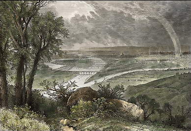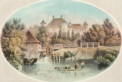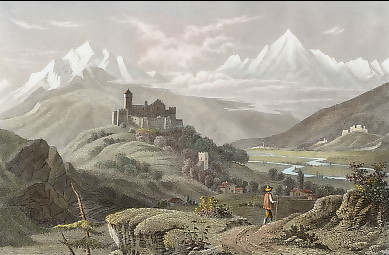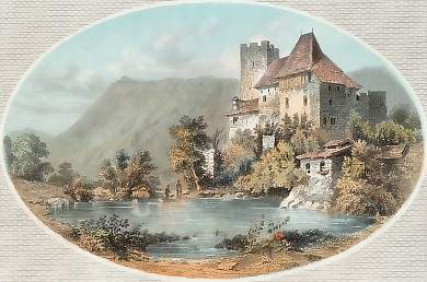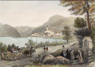Austria. Original wood engraving drawn by K. Girardet, engraved by Whitehead. 1863. Foxing in the right margin. Hand-coloured. 15,5x9,5cm. Matted.