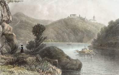 Austria. Original steel engraving, engraved by E. Challis after W. H. Bartlett. 1842. Very good condition. Hand-coloured. 18,5x12,5cm. Matted.