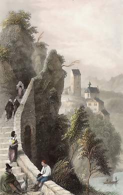 Austria. Original steel engraving, engraved by J. H. Le Keux after W. H. Bartlett. 1842. Very good condition. Hand-coloured. 17,5x12cm. Matted.