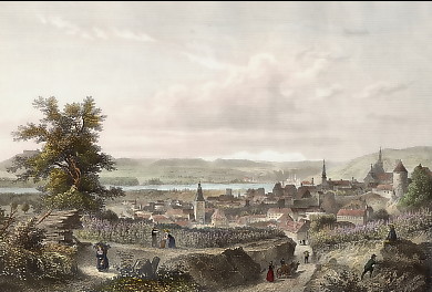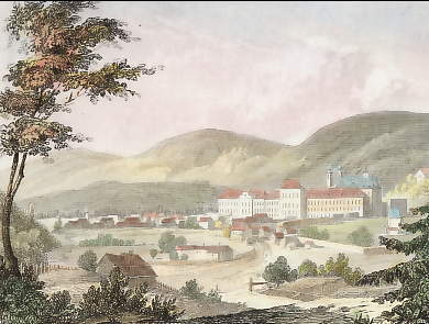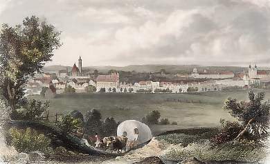 Austria. Original tinted engraving on steel drawn by H. Lauterbach, engraved by W. French. ca 1850. Good condition. Hand-coloured. 21,5x14,5cm. Matted.