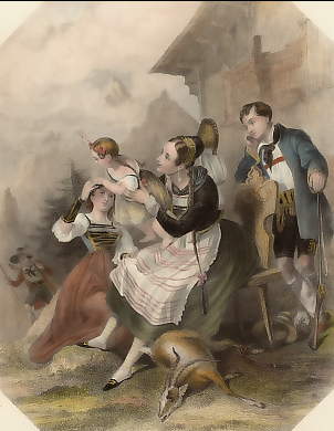 Austria. Original tinted engraving on steel drawn by H. Lauterbach, engraved by W. French. ca 1850. Good condition. Hand-coloured. 20,5x13,5cm. Matted.