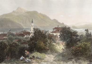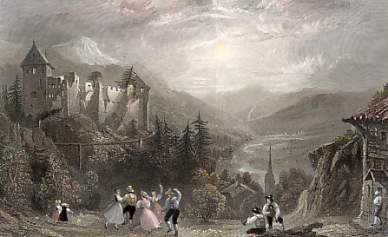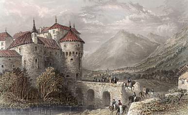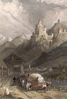 Austria. Original steel engraving, drawn by W. H. Bartlett, engraved by J. Cousen. 1842. Very good condition. Hand-coloured. 18x13cm. Matted.
