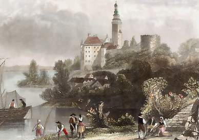 Austria. Original steel engraving, drawn by T. Allom, engraved by S. Lacey. 1835. Good condition. Hand-coloured. 15,5x9,5cm. Matted.