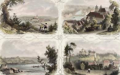 Austria. Original steel engraving, drawn by C. Stanfield, engraved by J. T. Willmore. 1832. Very good condition. Small margins, as issued. Hand-coloured. 14x9,5cm. Matted.