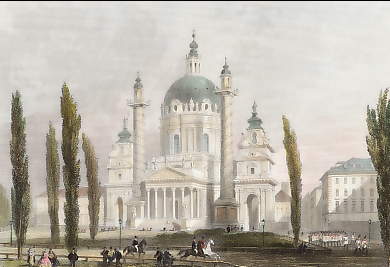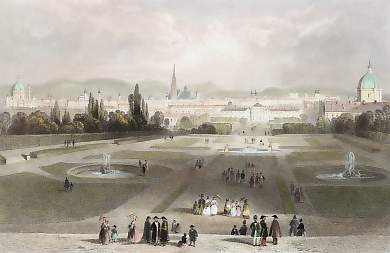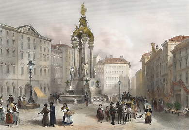 Austria. Original tinted engraving on steel drawn by H. Lauterbach, engraved by W. French. ca 1850. Defect in the decorative border. Hand-coloured. 21x14cm. Matted.