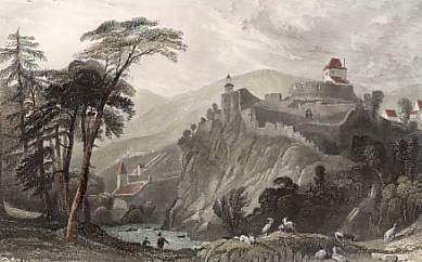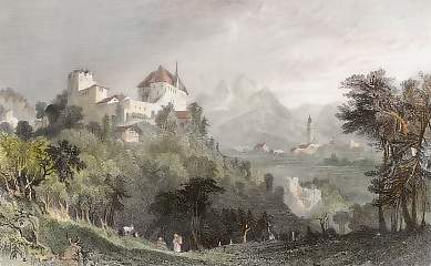 Austria. Original steel engraving, drawn by T. Allom, engraved by S. Lacey. 1835. Good condition. Hand-coloured. 15,5x10cm. Matted.