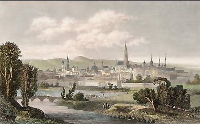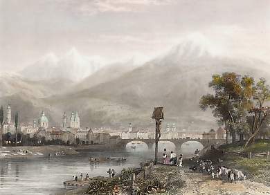 Austria. Original steel engraving, engraved by J. C. Armytage after W. H. Bartlett. 1842. Very good condition. Hand-coloured. 18x12,5cm. Matted.
