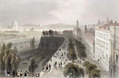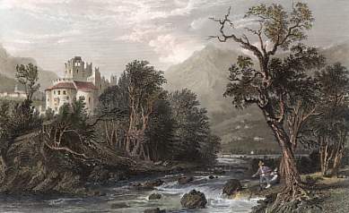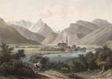 Austria. Original steel engraving, drawn by W. H. Bartlett, engraved by W. Mossman. 1842. Very good condition. Hand-coloured. 18x12cm. Matted.
