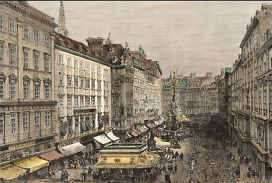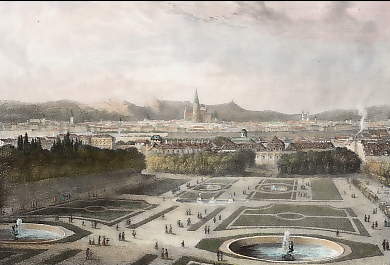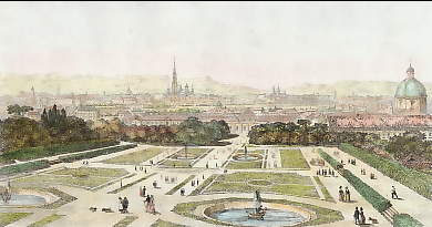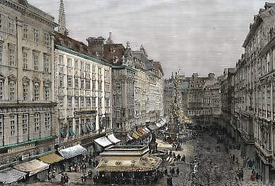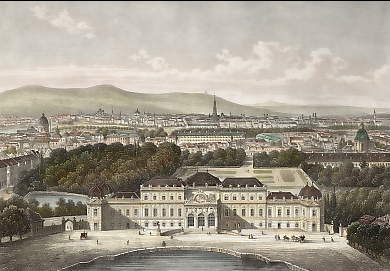 Austria. Original optical print. Second part of the XVIIIth century. Original hand-colouring. Very good condition. 37x21,5cm. Framed (53x40cm). DHL shipping only.