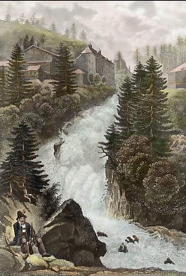 Austria. Original steel engraving, engraved by L. Norton after T. Ender. ca 1845. Good condition. Hand-coloured. 15,5x10cm. Matted.