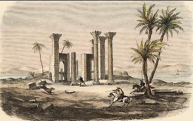 Égypte. Gravure sur acier, gravée par J. Cousen d´après W. H. Bartlett. 1847. Légères rousseurs dans les marges. Aquarellée à la main. 19,5x12,5cm. Montée sous passe-partout.