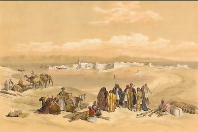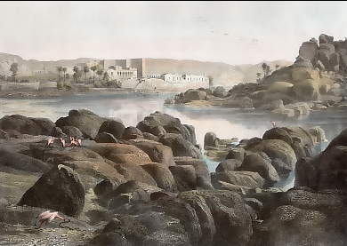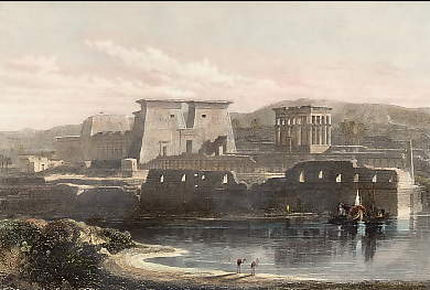Égypte. Gravure sur acier, gravée par E. Finden d´après D. Roberts. 1852. Très bon état. Aquarellée à la main. 14x9,5cm. Montée sous passe-partout.