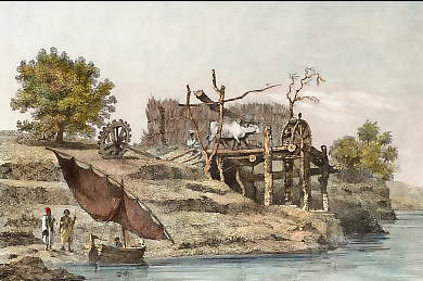Égypte. Gravure sur acier, gravée par A. H. Payne d´après (H. Bibby). ca 1840. Bon état. Aquarellée à la main. 15,5x10cm. Montée sous passe-partout.
