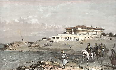 India. Original steel engraving drawn by Biermann, engraved by T. Heawood. ca 1850. Very good condition. Hand-coloured. 15,5x12,5cm. Mounted.