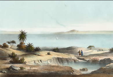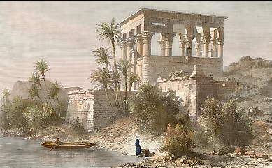 Égypte. Lithographie couleur dessinée par J. M. Bernatz. 1855. Très bon état. Aquarellée à la main. 16,5x11,5cm. Montée sous passe-partout.