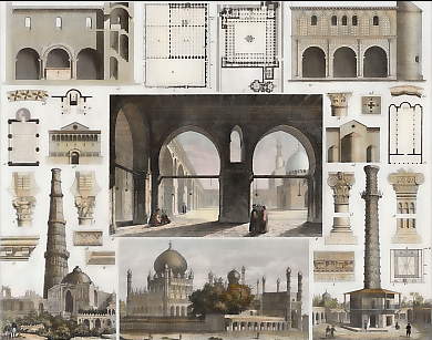 1. Plan of the Mosque at Cordova, 2-4. Details from the same, 5. Plan of the Mosque of Ebn Touloun at Cairo, 6. Court in the same, 7. Plan of the Mosque of El Moyed in Cairo, 8. Mausoleum at Bedjapur, 9. Kutub Minhar near Dehli, 10. The Antler Tower in Ispahan, 11-20. The Abbey of Lorsch, 21-26. Basilica of St. Saba at Rome.