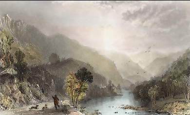 Angleterre. Gravure sur acier, gravée par E. Finden d´après W. Westall. 1829. Très bon état. Aquarellée à la main. 14,5x8,5cm. Montée sous passe-partout.