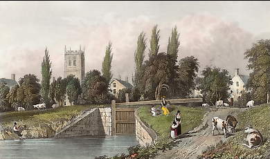 England. Original steel engraving drawn by T. Allom, engraved by M. J. Starling. 1830. Very good condition. Hand-coloured. 15x9,5cm. Mounted.