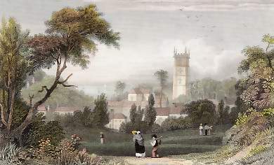 England. Original steel engraving drawn by T. Allom, engraved by M. J. Starling. 1832. Very good condition. Hand-coloured. 15x9,5cm. Mounted.