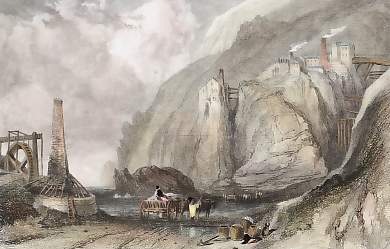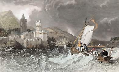 England. Original steel engraving drawn by C. Stanfield, engraved by W. Miller. 1836. Very good condition. Hand-coloured. 13,5x9cm. Mounted.