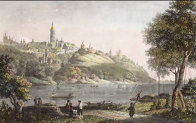Ukraine. Original steel engraving drawn by J. Ramage, engraved by J. Stephenson. ca 1860. Very good condition, Modern hand colouring. 18x12cm. Matted.
